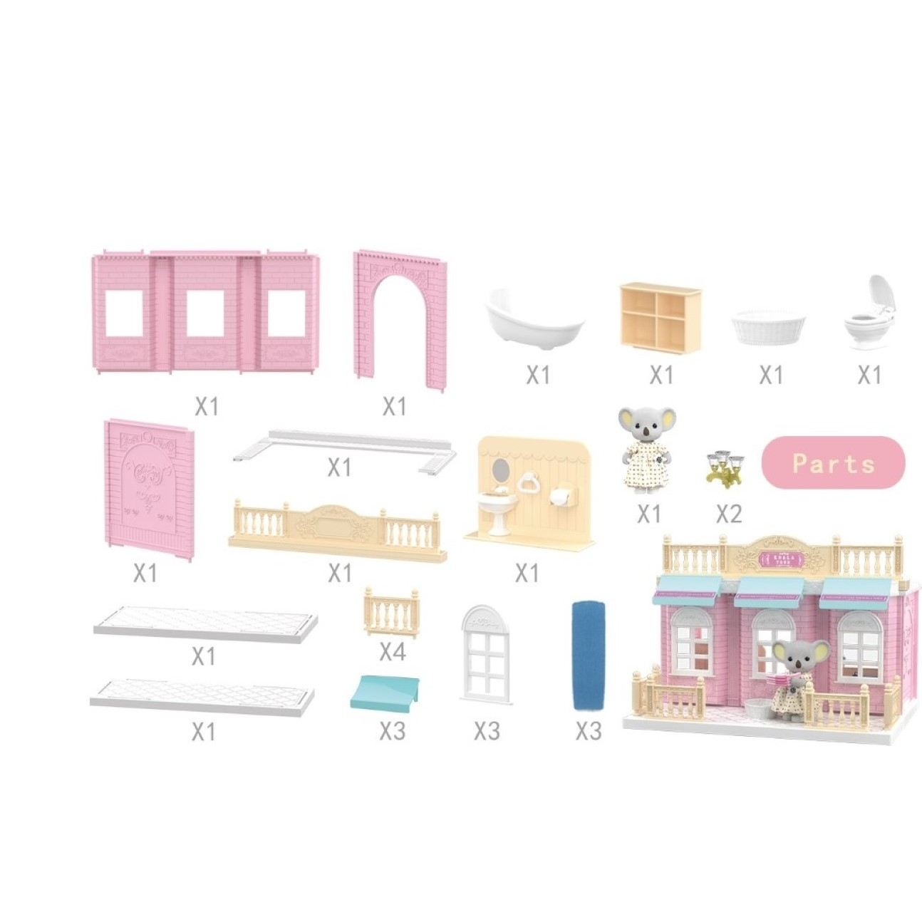 Pachetul include atat piesele pentru a construi baia, cat si piesele de mobilier pentru aceasta pe care copilul tau le poate invata de la o varsta mica, dar si o figurina simpatica pentru si mai multa distractie.