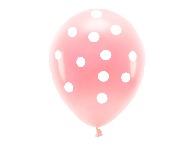 Baloane Eco Dots, roz deschis pastel, cu imprimeu alb pe cinci fețe, diametru aprox. 33 cm.