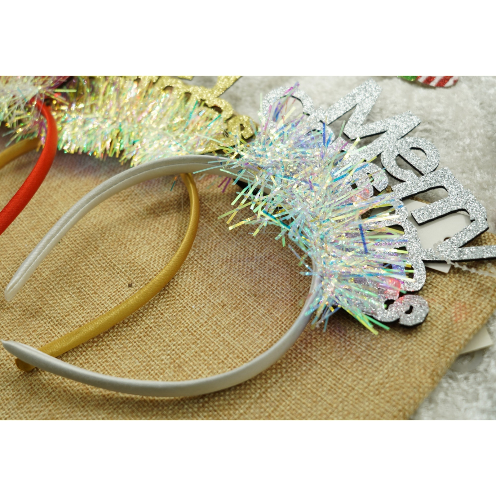 Bentita/cerc Mery Cristmas, culoare gri metalic cu beteala, marime standard, Flippy