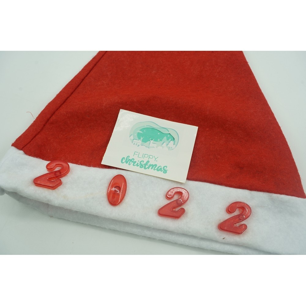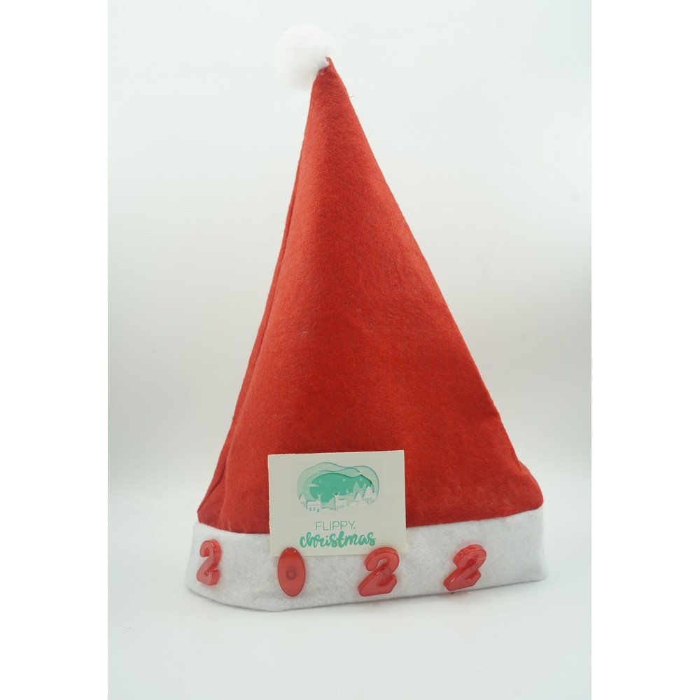 Caciulita de Mos Craciun,Flippy, cu inscriptie 2022 ,led si muzica, rosie, marime universala, poliester