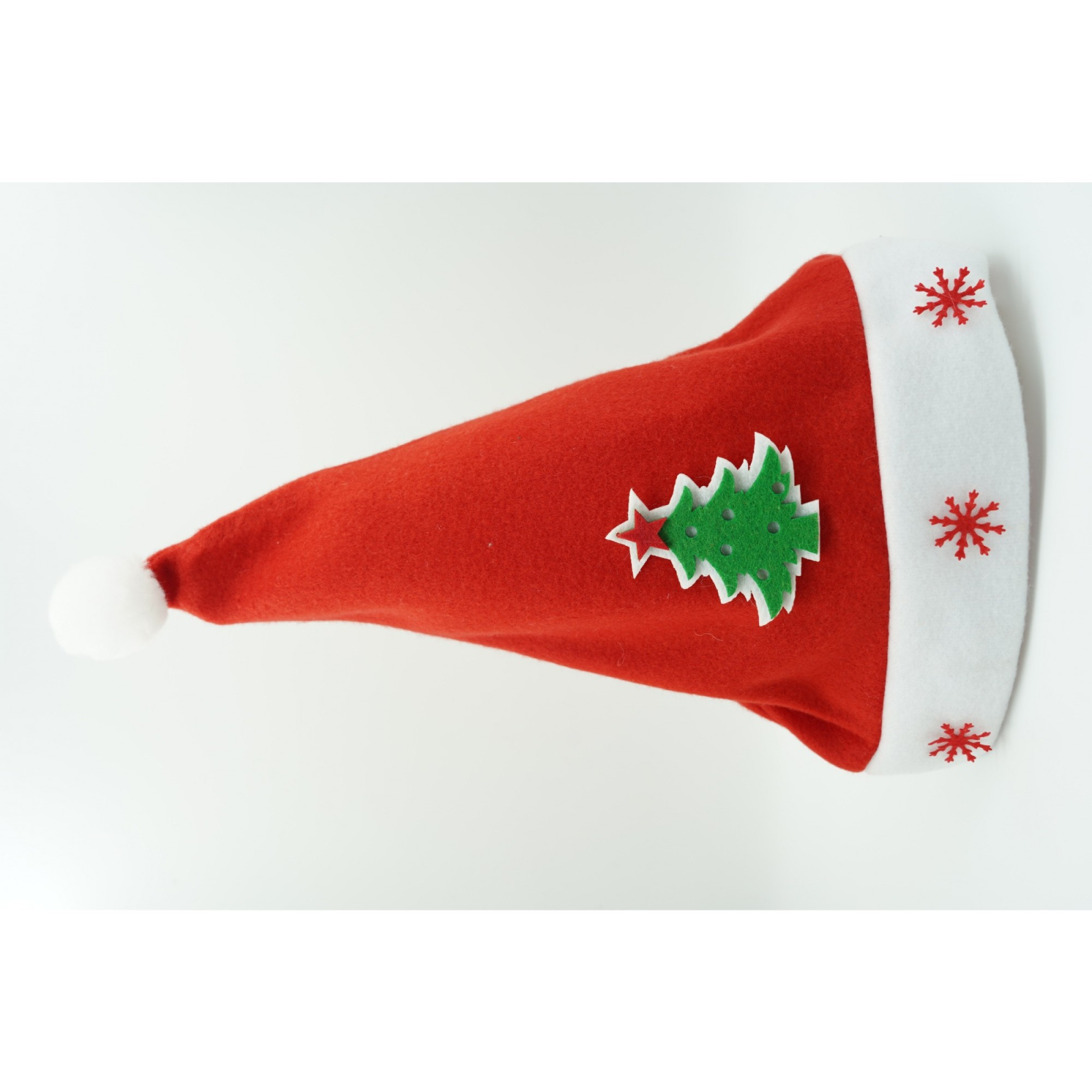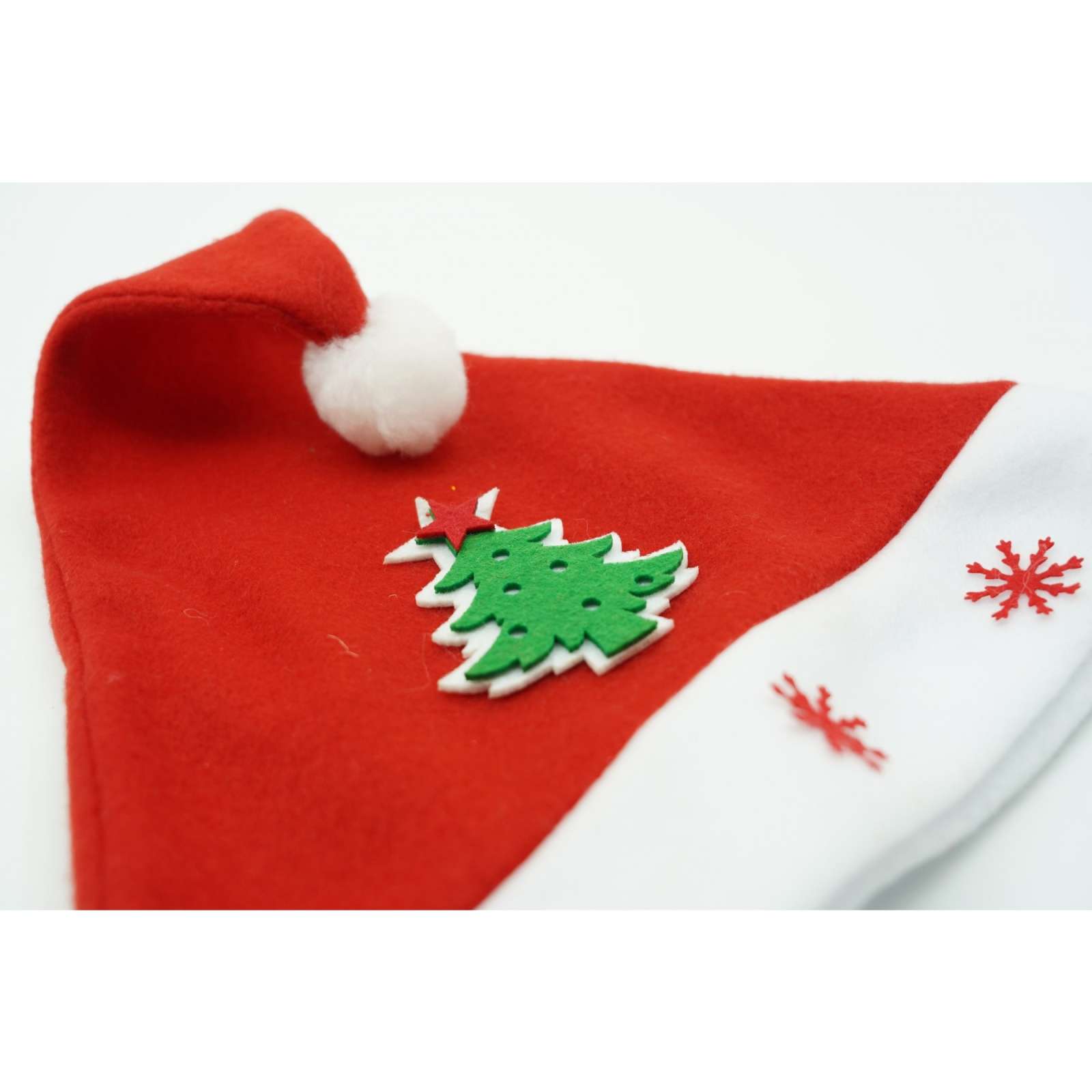 Caciulita de Mos Craciun, Flippy,cu model de Brad si ornament fulg de nea, rosie, marime universala, material textil