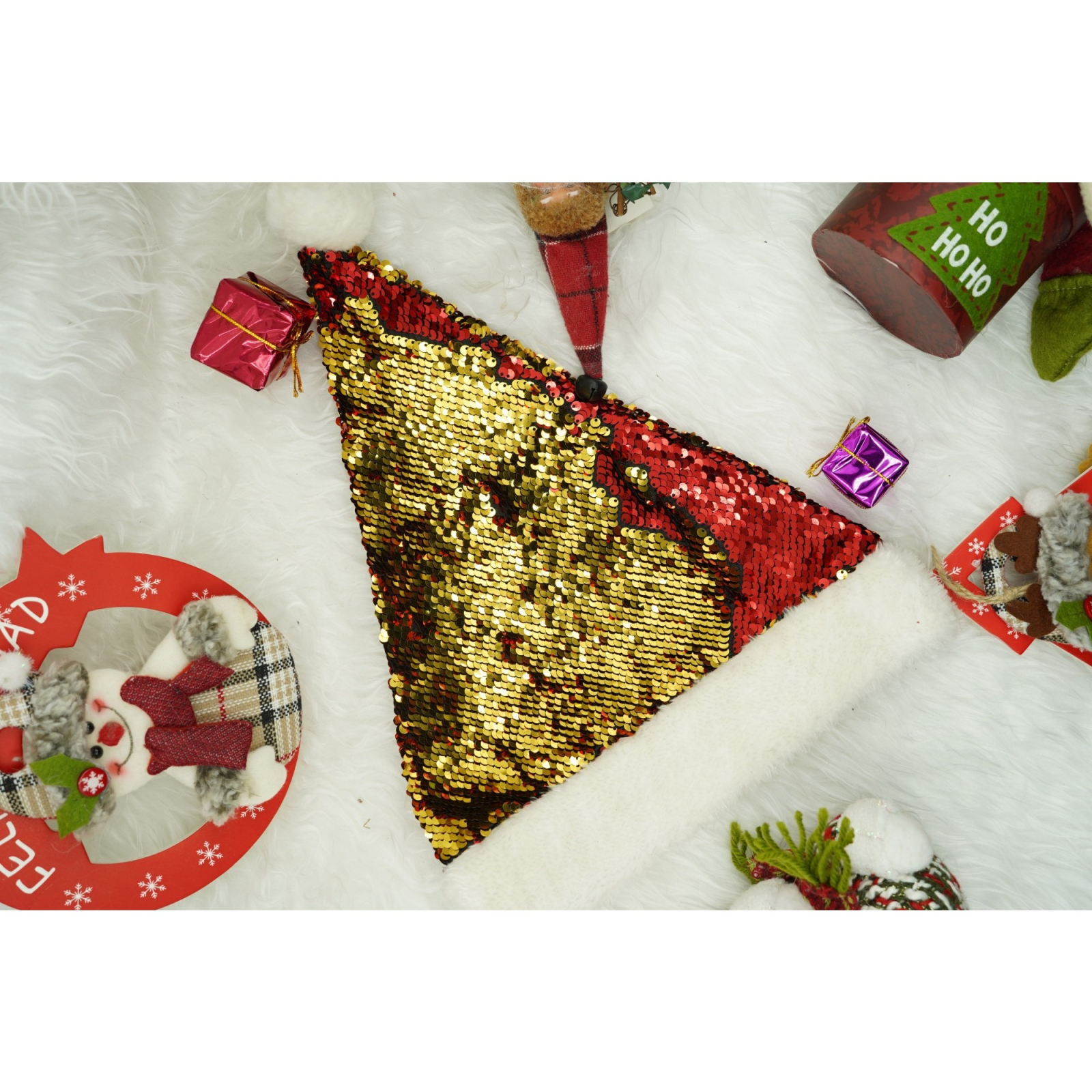 Caciulita de Mos Craciun, Flippy,cu strasuri, in 2 culori, rosie - aurie, marime universala, material textil