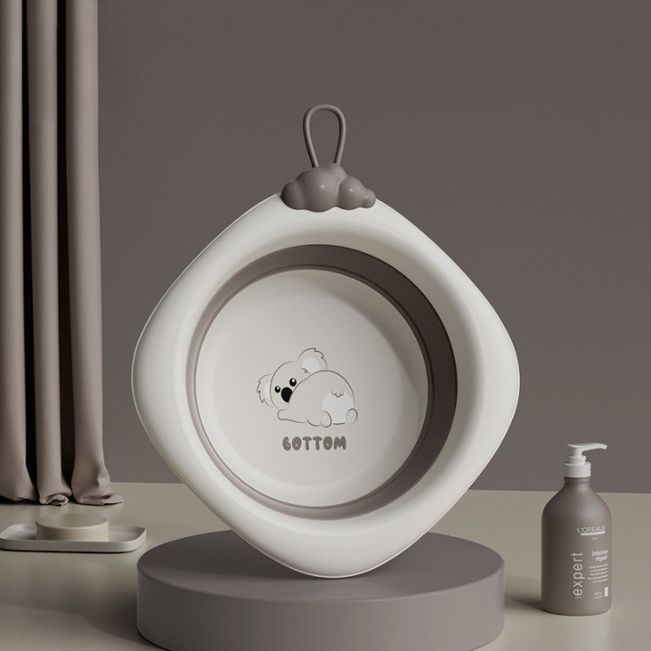 Cada Pliabila pentru Baie pentru Copii , Cadita pentru Bebelusi, Model Romb Koala, Gri, 30x30x3.5 cm, 4L