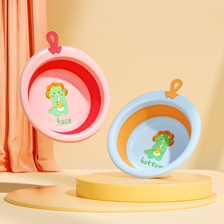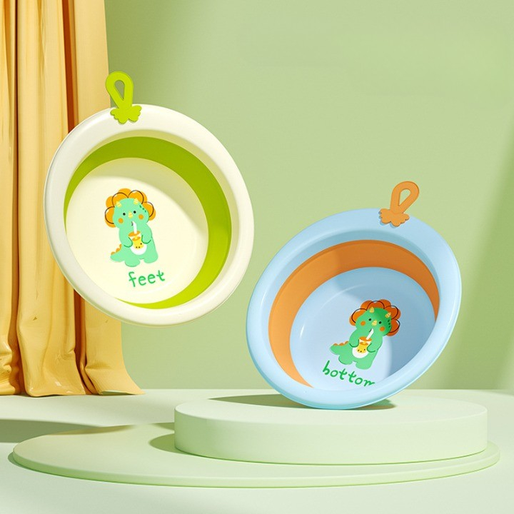 Cada Pliabila pentru Baie pentru Copii , Cadita pentru Bebelusi, Model Rotund cu Dinozaur, Blue, 30x30x3.7 cm, 4L