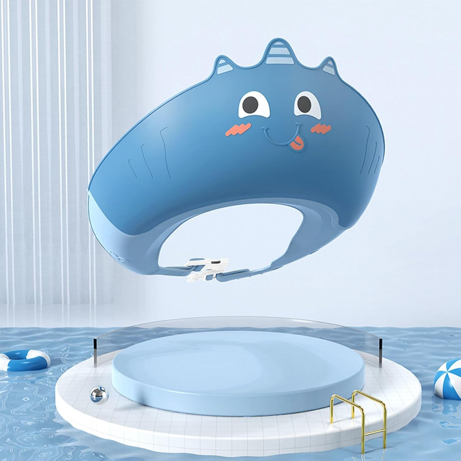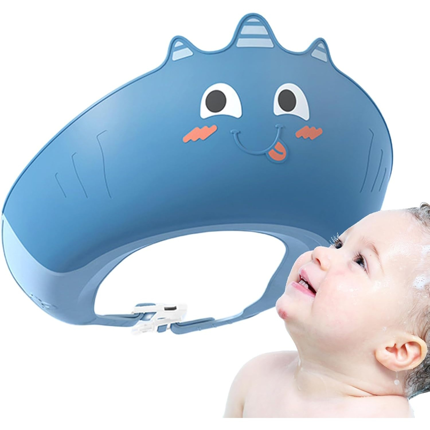 Casca de Dus , Previne Scurgerea Apei si Samponului pe Fata, 0-12 Ani, Ajustabila, din TPE+PP, 20 x 23 cm, Model Unicorn, Albastru