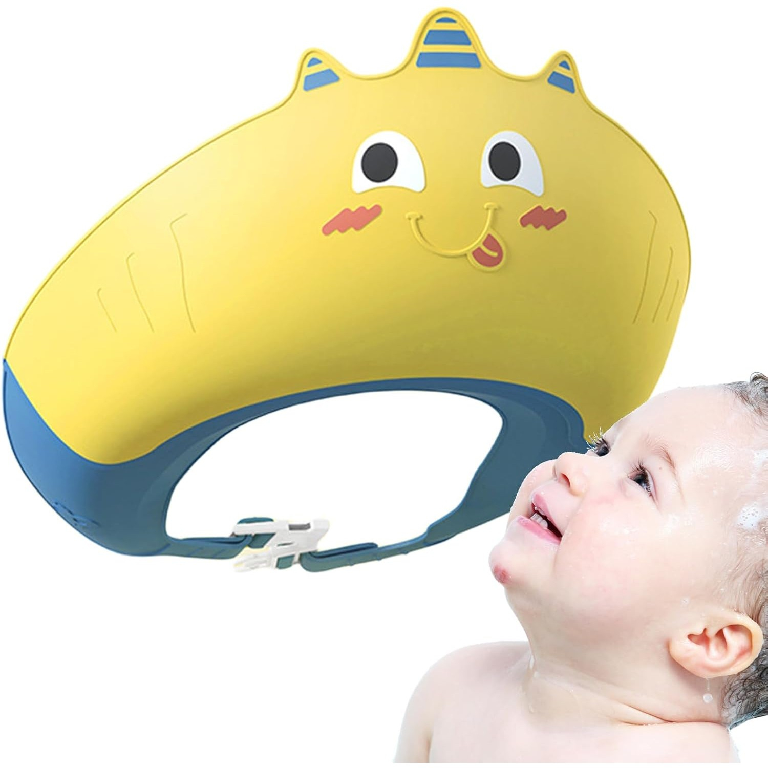 Casca de Dus , Previne Scurgerea Apei si Samponului pe Fata, 0-12 Ani, Ajustabila, din TPE+PP, 20 x 23 cm, Model Unicorn, Galben/Albastru