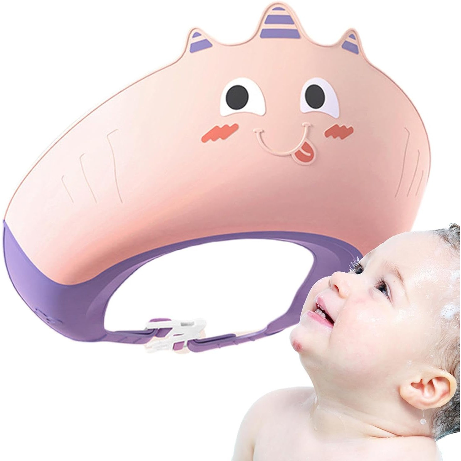 Casca de Dus , Previne Scurgerea Apei si Samponului pe Fata, 0-12 Ani, Ajustabila, din TPE+PP, 20 x 23 cm, Model Unicorn, Roz/Mov
