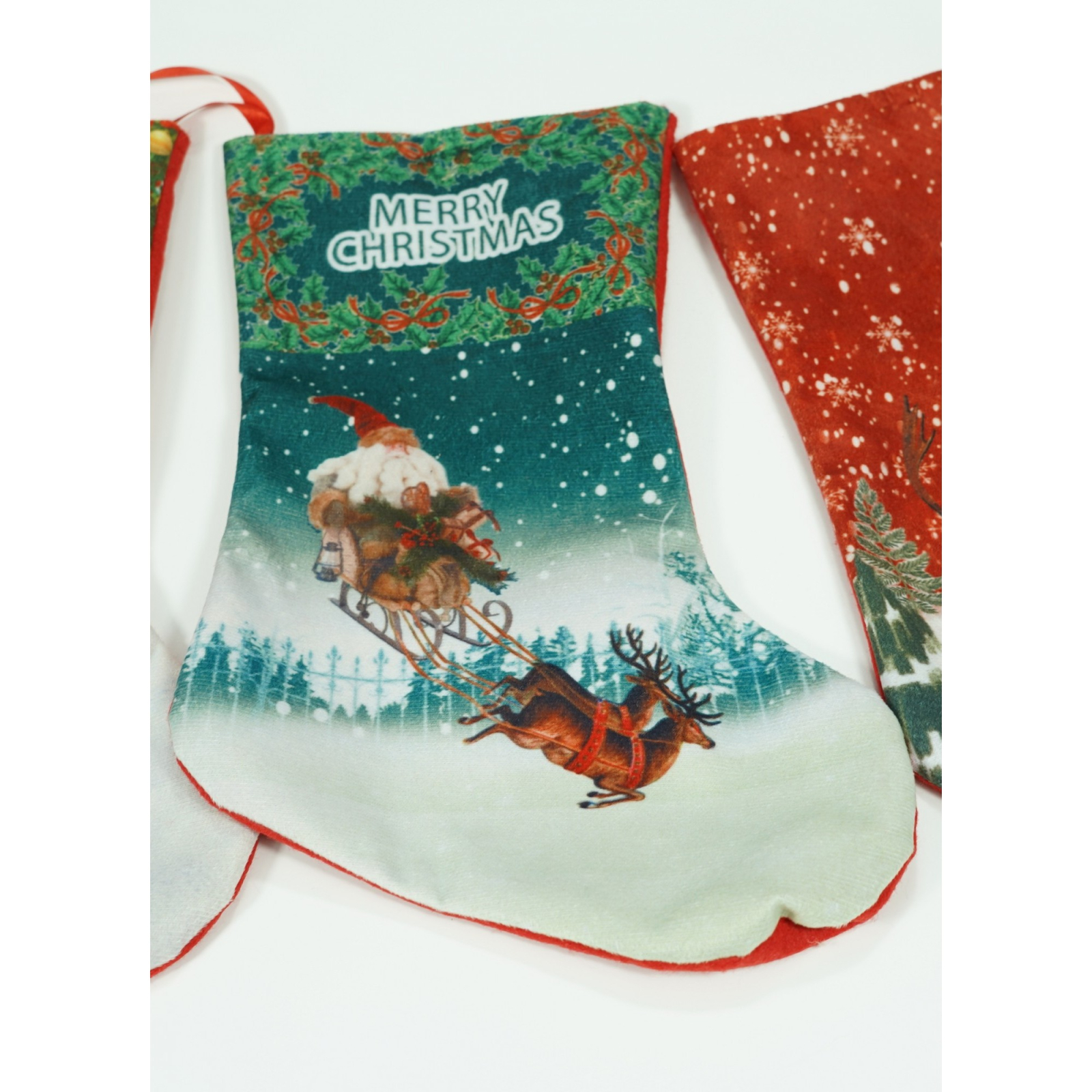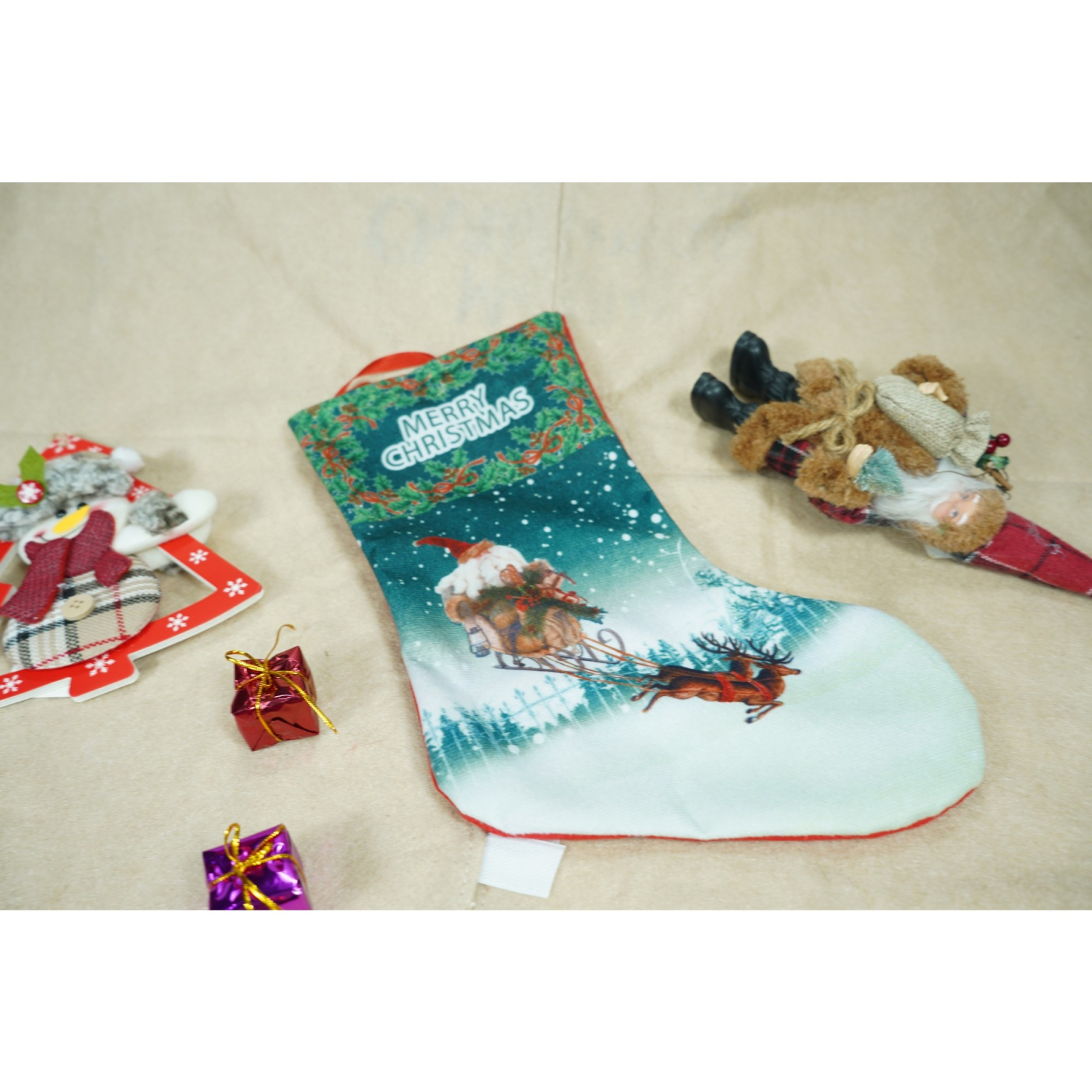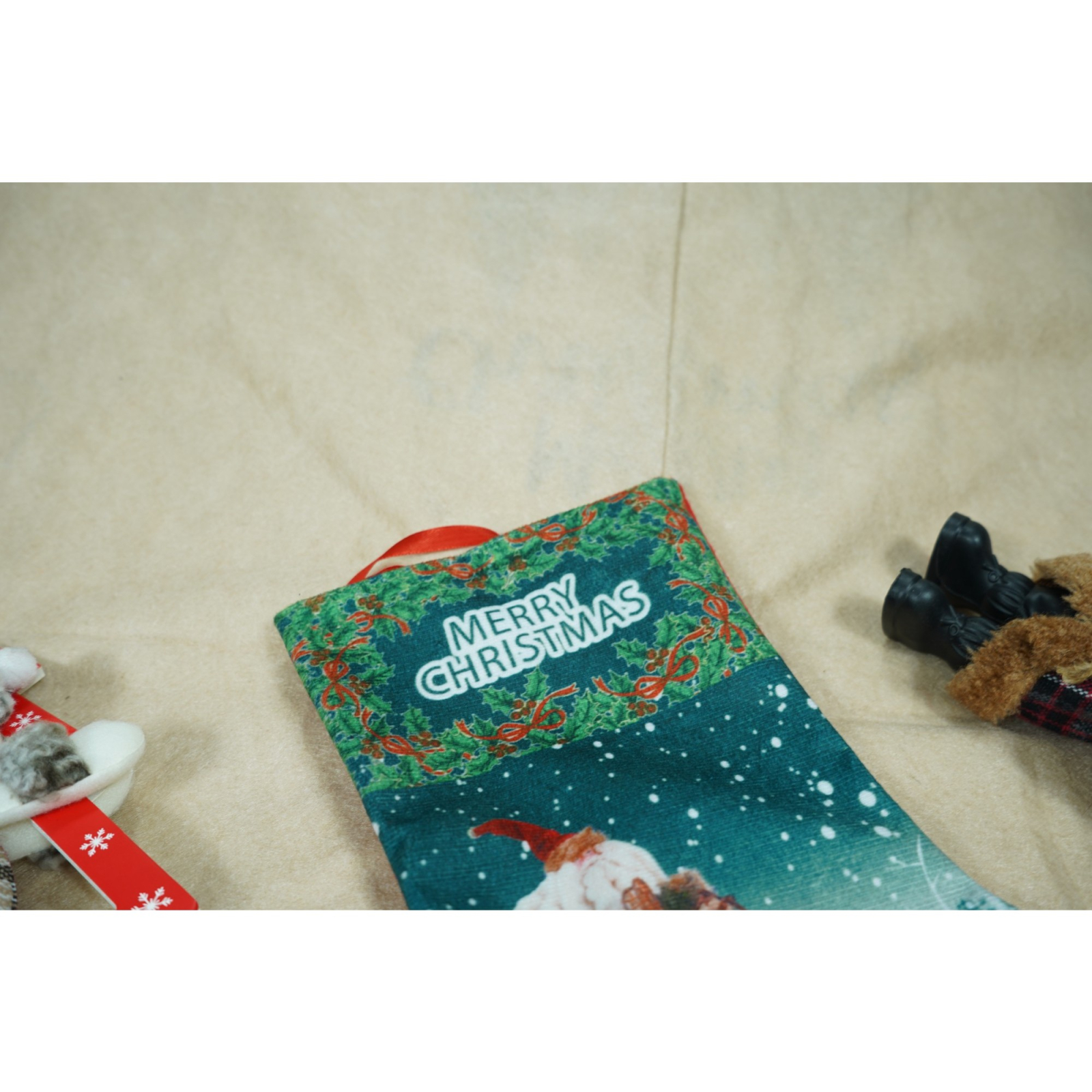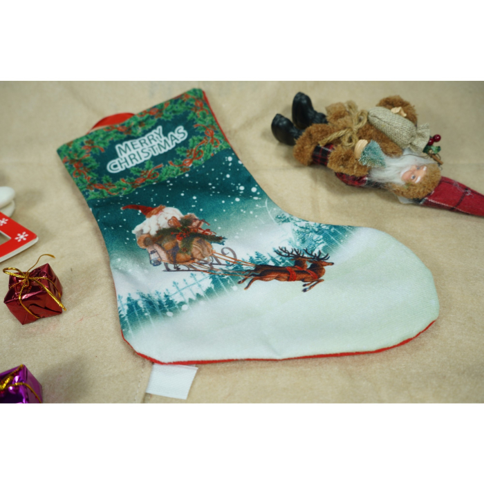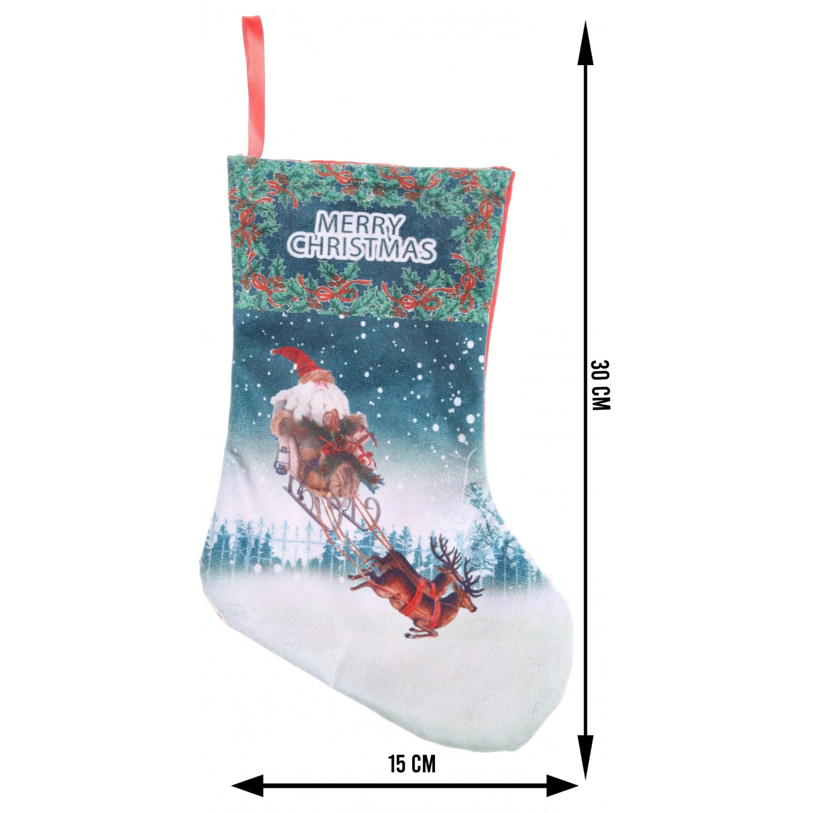 Ciorap Cadouri, culoare albastru-verde, imprimeu Mos Craciun, marimea 15x30 cm, Flippy