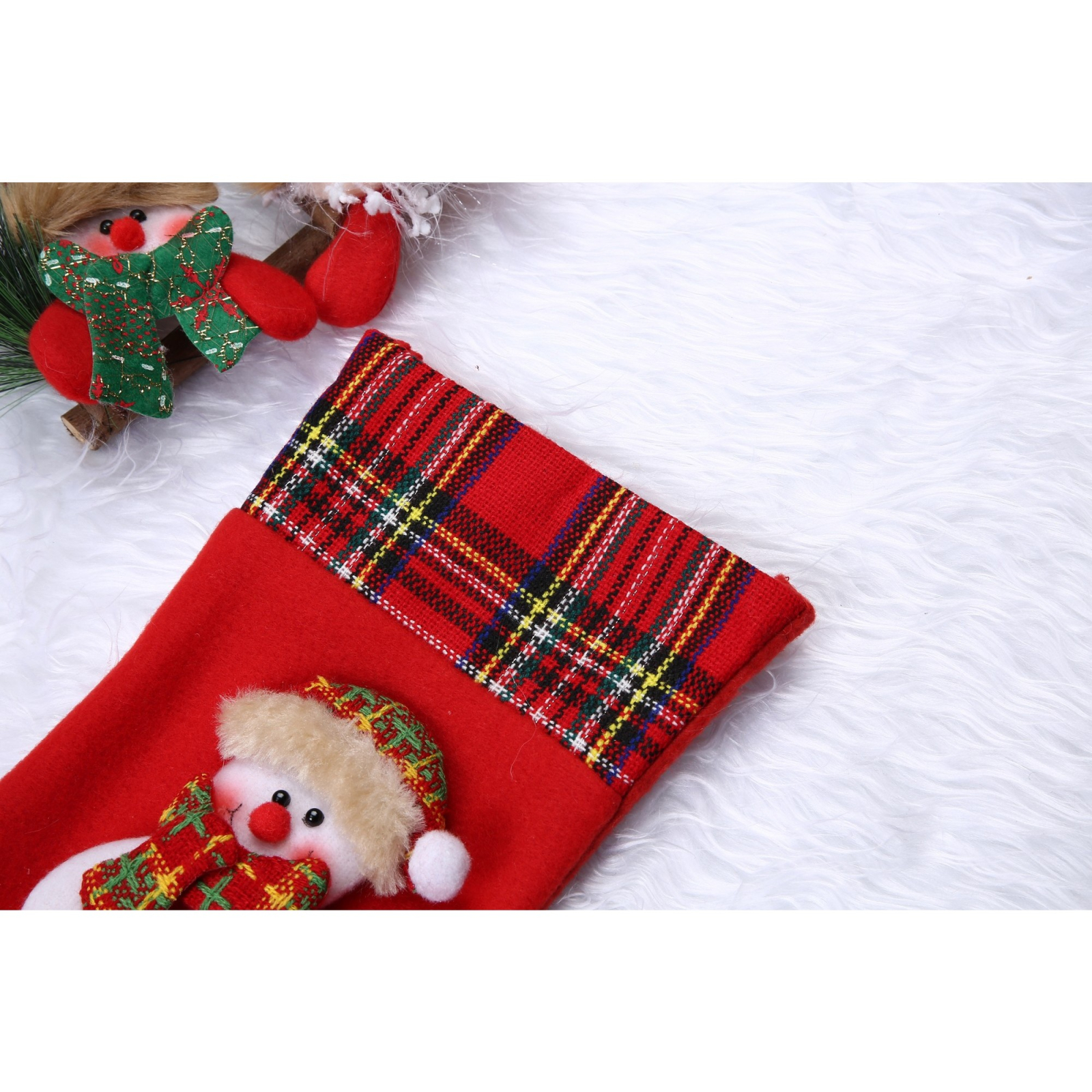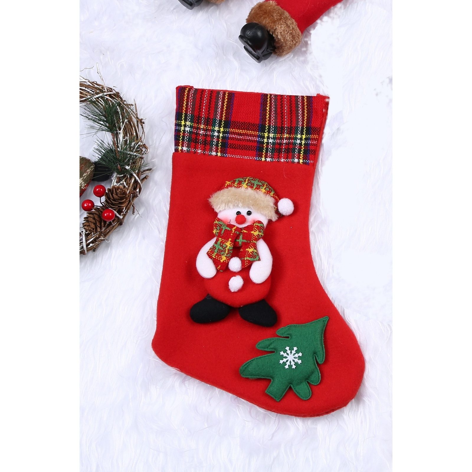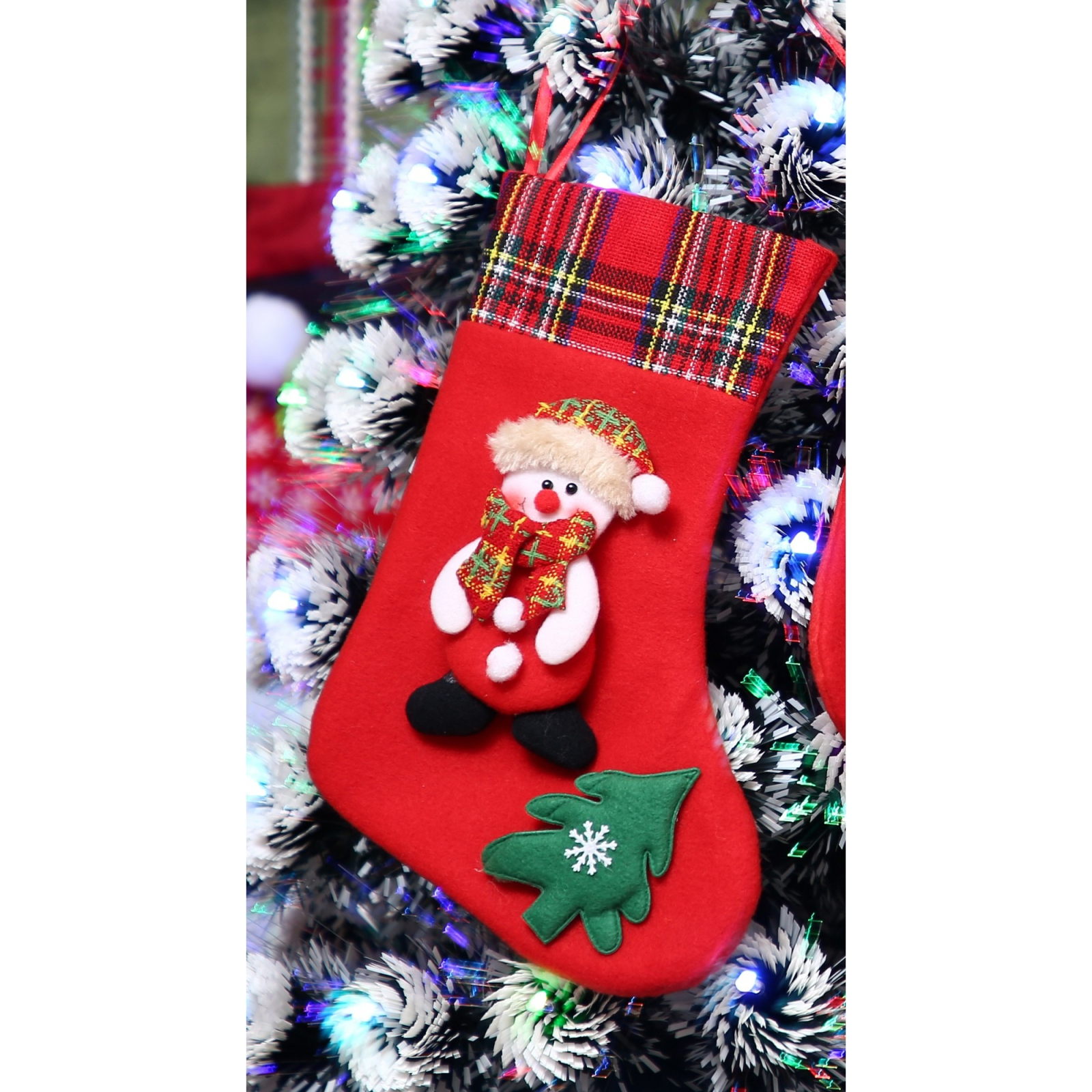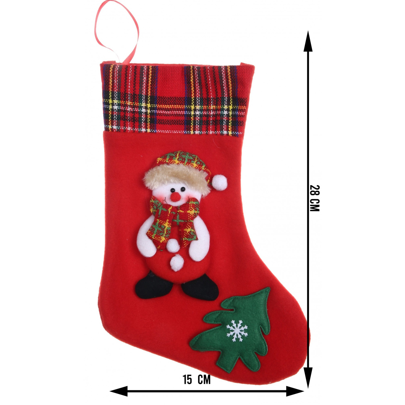 Ciorap Cadouri, culoare rosie, imprimeu om de zapada, marimea 15x28 cm, Flippy
