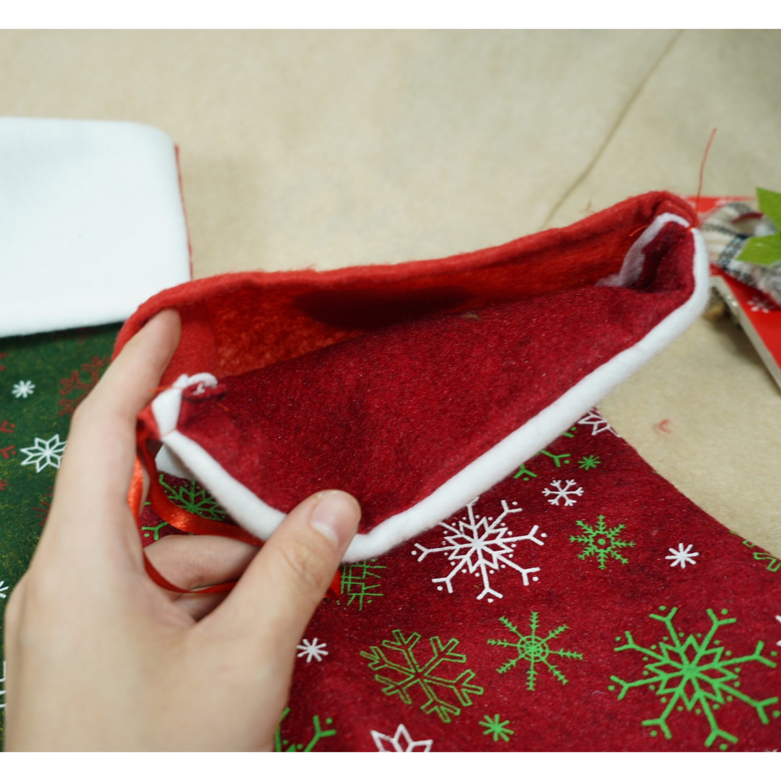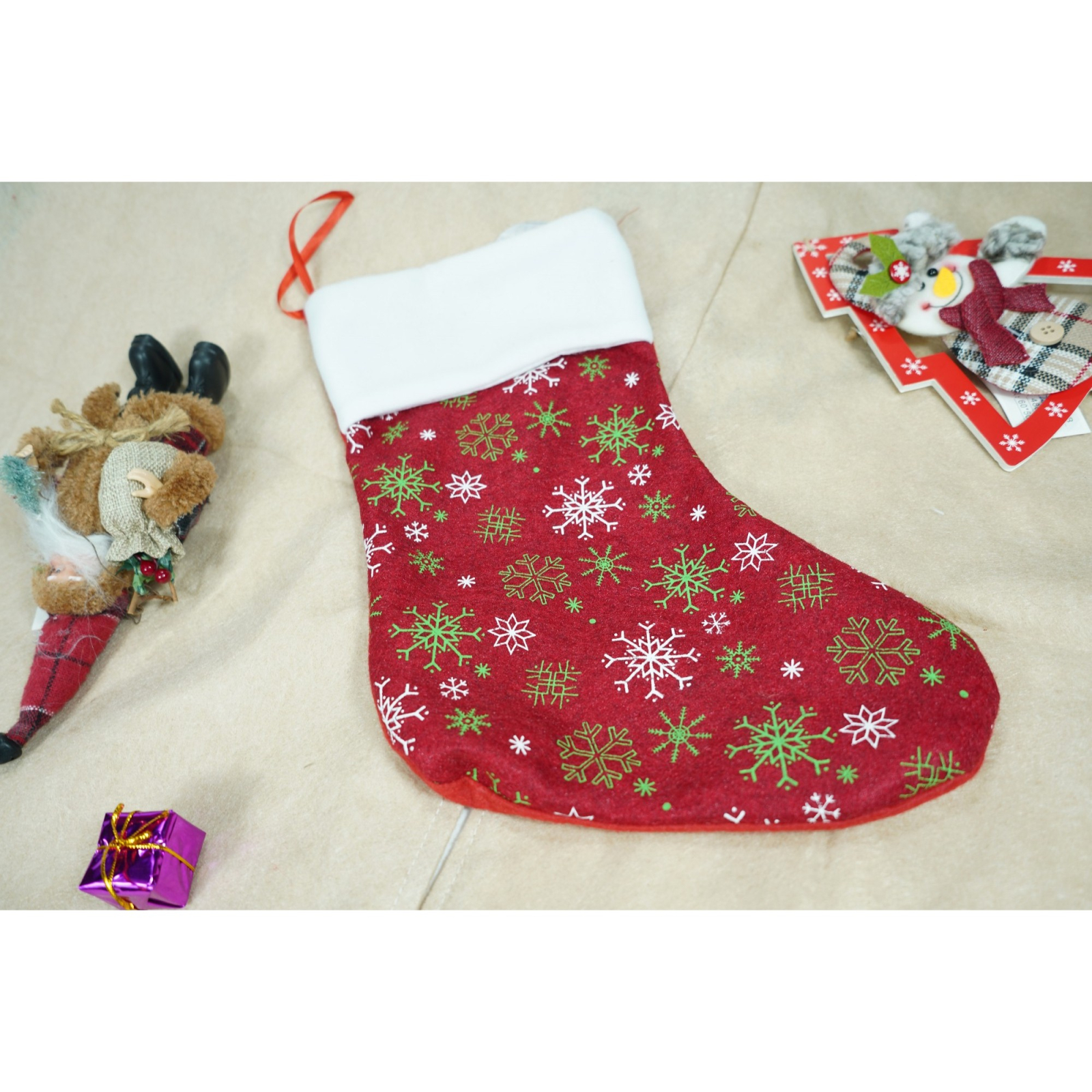 Ciorap Cadouri, culoare rosie,imprimeu sclipici -fulg, marimea 20x33cm, Flippy