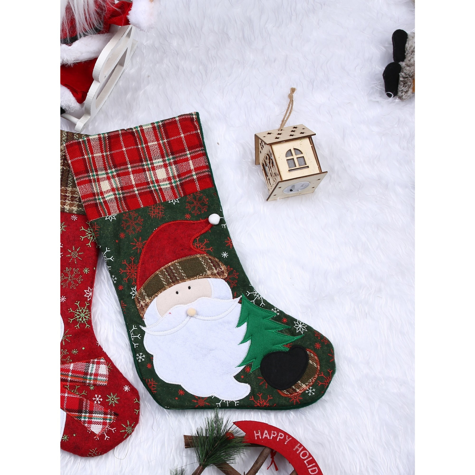 Ciorap Cadouri, Flippy,cu model Mos Craciun,verde, marimea 20x40 cm, textil, interior
