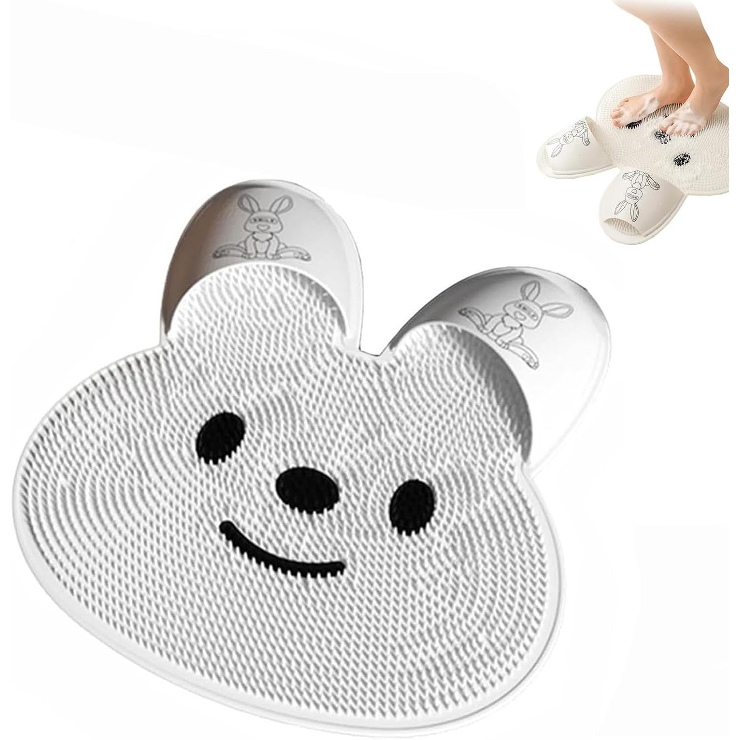 Covoraș de Baie Flippy – pentru Masaj și Spălat Picioare, TPE, Antiderapant, 45 × 45 cm, Model Iepuraș