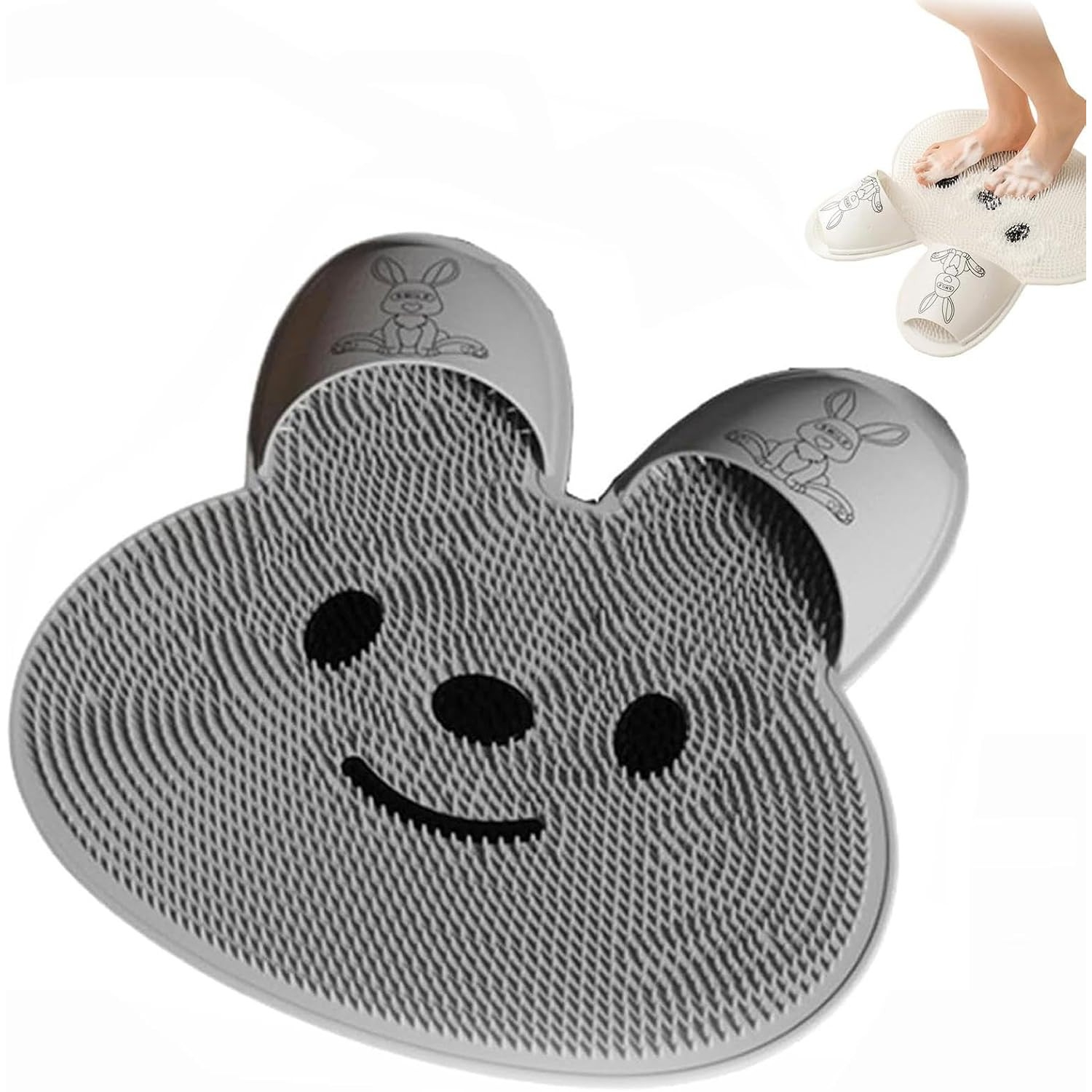 Covoras de Baie , pentru Masaj/Spalat Picioare, din TPE, Antiderapant, 45 x 45 cm, Model Iepuras, Gri