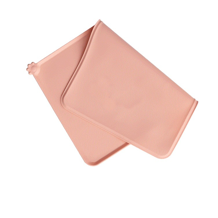 Covoras din silicon pentru animale Flippy, pentru bol de apa si mancare, antiderapant, margini ridicate pentru a mentine apa, 48.5x30 cm, Roz