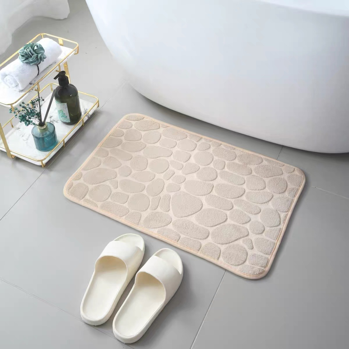 Covoraș pentru Baie Antiderapant, Flippy, Uscare Rapidă, Model 3D Piatra, 40x60 cm, Bej