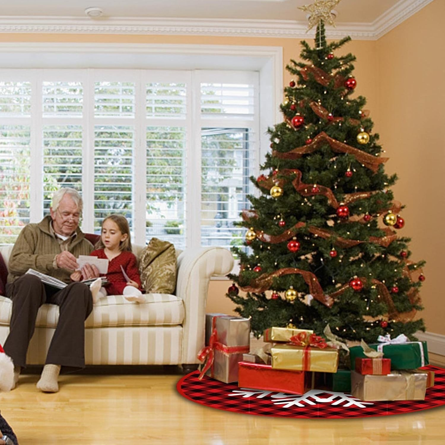 Covoraș pentru bradul de Crăciun Flippy - Model Fulg de Nea, Carouri Roșu-Negru