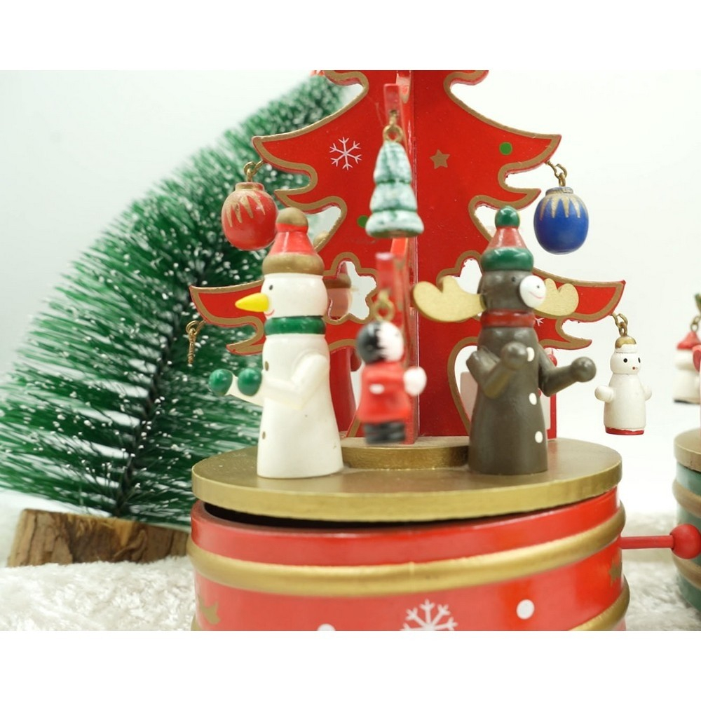 Cutiuta muzicala decorata de Craciun, Bradut, Rosu, din Lemn, 12 cm x 22 cm, Interior, Flippy