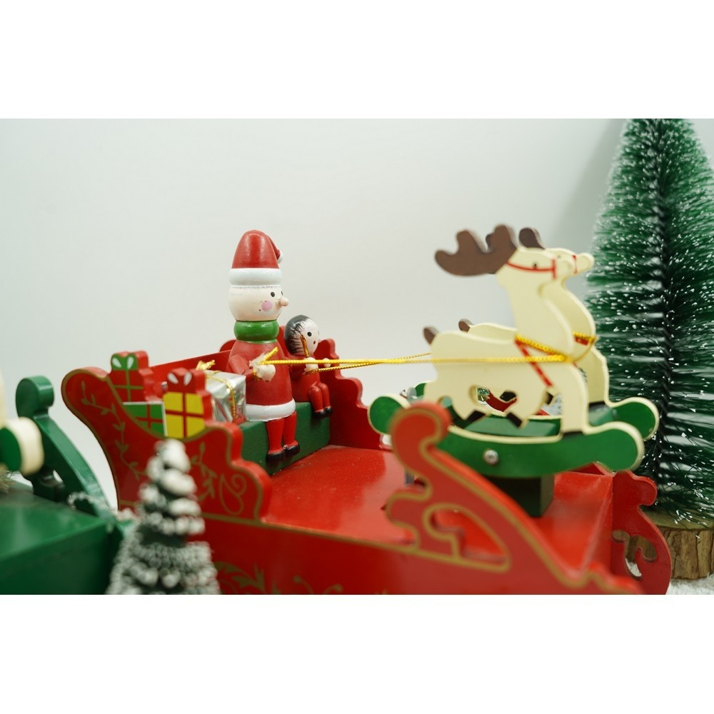Cutiuta muzicala decorata, Sania lui Mos Craciun, Rosu, din Lemn, 16 cm x 18.5 cm, Interior, Flippy