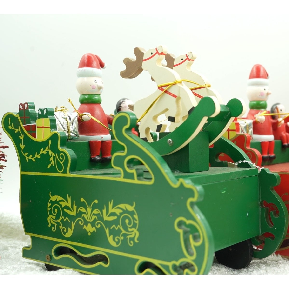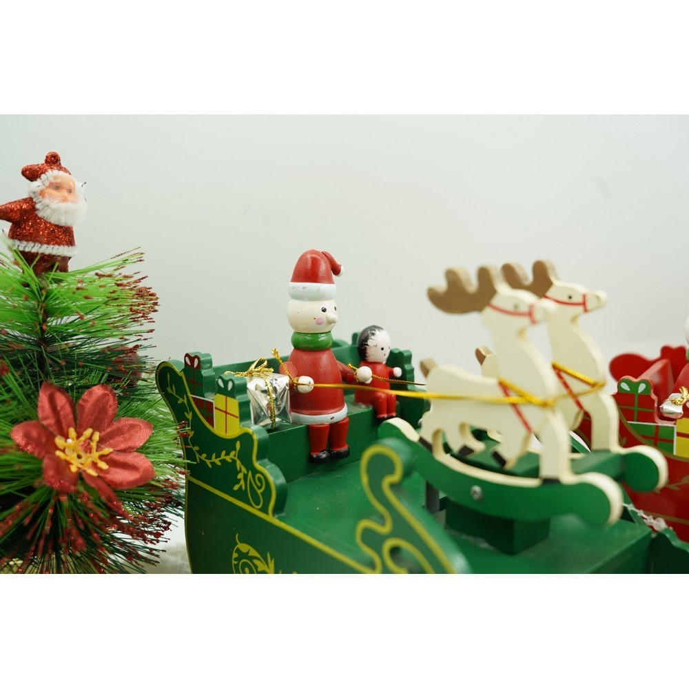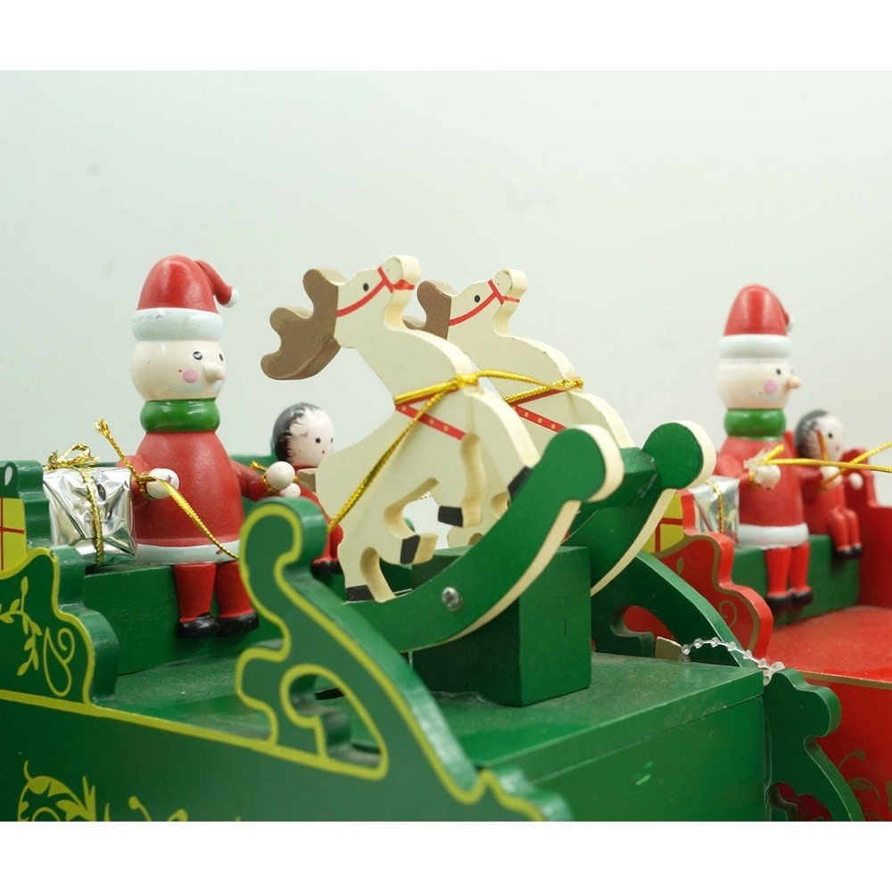 Cutiuta muzicala decorata, Sania lui Mos Craciun, Verde, din Lemn, 16 cm x 18.5 cm, Interior, Flippy
