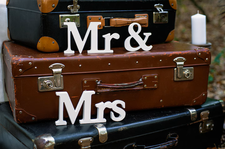 Decor masa de prezidiu Mr & Mrs, lemn alb.