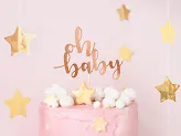 Decor pentru tort cu inscripția „Oh baby” în auriu roz, înălțime aprox. 25