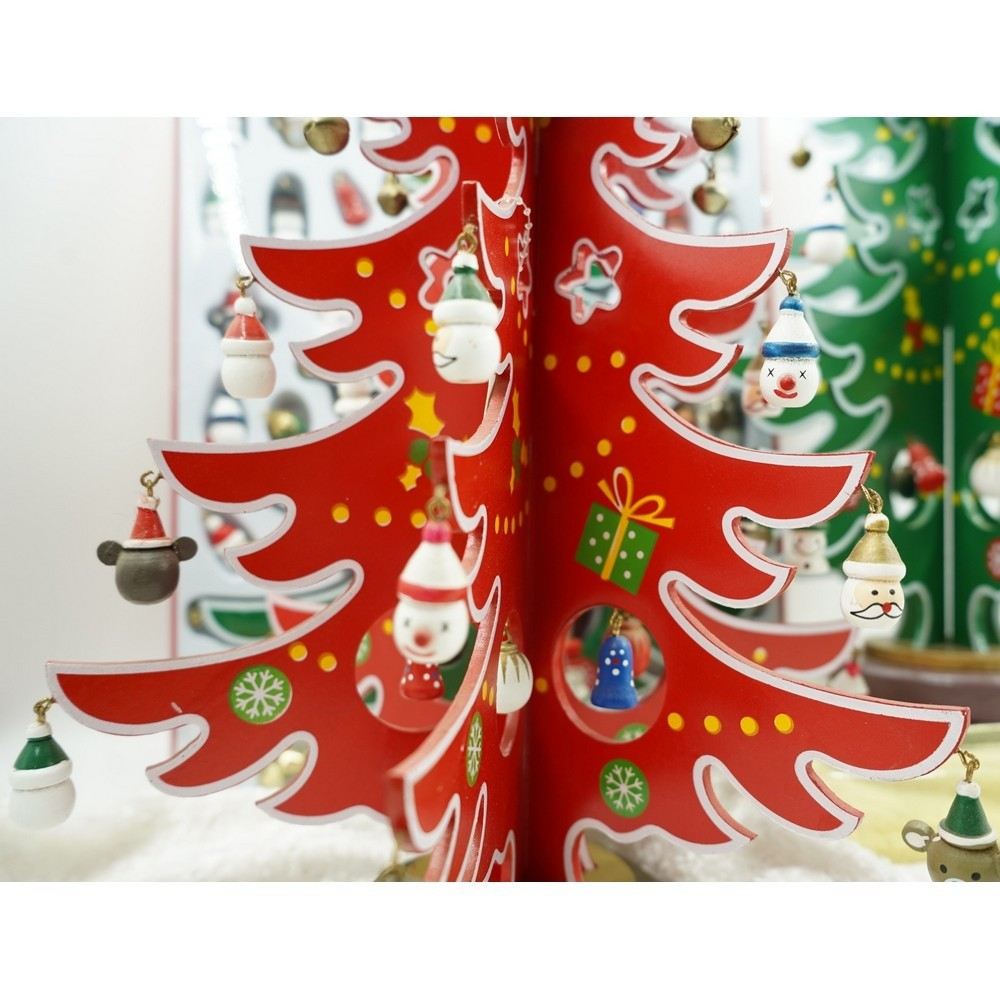 Decoratiune Craciun, Brad, Rosu/Alb, 15 cavitati cu ornamente, 25.5 cm x 33 cm, Lemn, Flippy