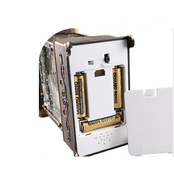 Decoratiune Craciun, Tip Felinar, Figurine Mos Craciun cu Baietel, 3 Moduri, Functie Muzicala, Zapada in Miscare, Functioneaza Cu Baterii ( 3 x AA neincluse), Cablu USB (Inclus), Model Vintage Negru -