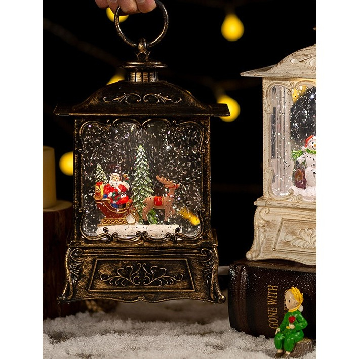 Decoratiune Craciun, Tip Felinar, Figurine Mos Craciun cu Sania, 3 Moduri, Functie Muzicala, Zapada in Miscare, Functioneaza Cu Baterii ( 3 x AA neincluse), Cablu USB (Inclus), Model Vintage Negru - A