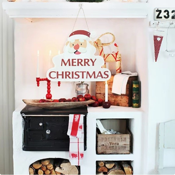 Decoratiune de Craciun, Flippy, de Agatat, pentru Usa, Perete sau Brad, Sfoara Inclusa, 26.2 x 32.5 cm, din Hartie 350g, Model Mos Craciun, Alb/Rosu