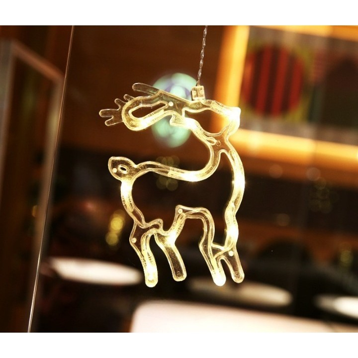 Decoratiune de Craciun Luminoasa in forma de Cerb/Caprioara, 18x13 cm, cu Ventuza, Alb Cald, Flippy