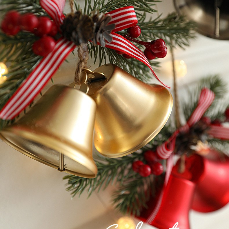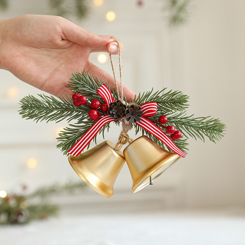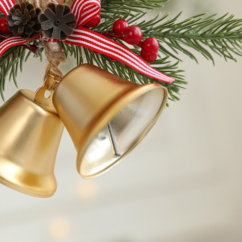 Decoratiune de Craciun pentru Brad, Flippy, Model 2 Clopotei de Craciun cu Crenguta de Brad, Decoratiune pentru Interior de Craciun, Auriu
