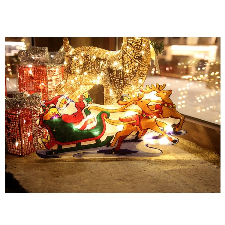 Decoratiune de Craciun pentru fereastra Flippy, Sanie cu reni, cu LED-uri, 26 cm, alb cald