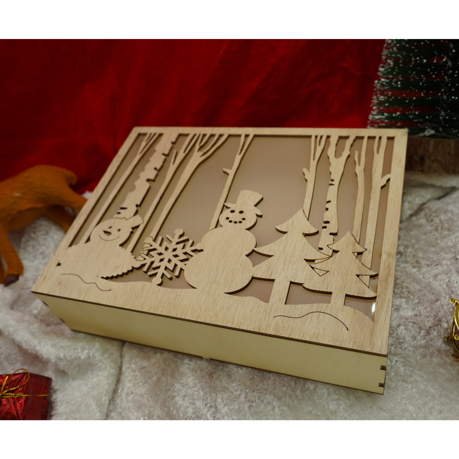 Decoratiune luminoasa, Flippy, Peisaj de iarna - Om de zapada, maro, lungime: 21 cm, latime: 5 cm, inaltime: 16 cm, lemn, interior/exterior
