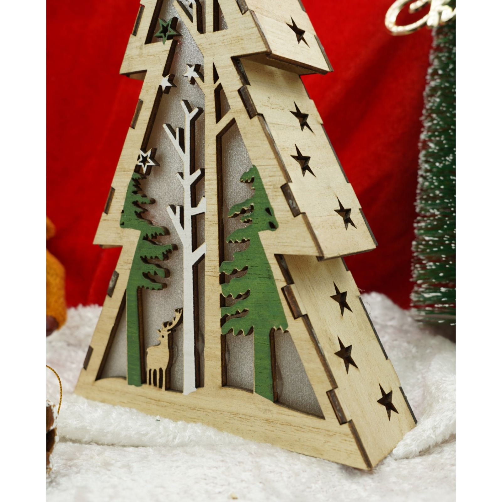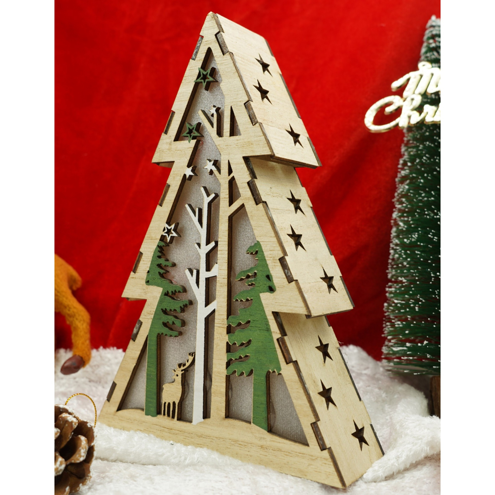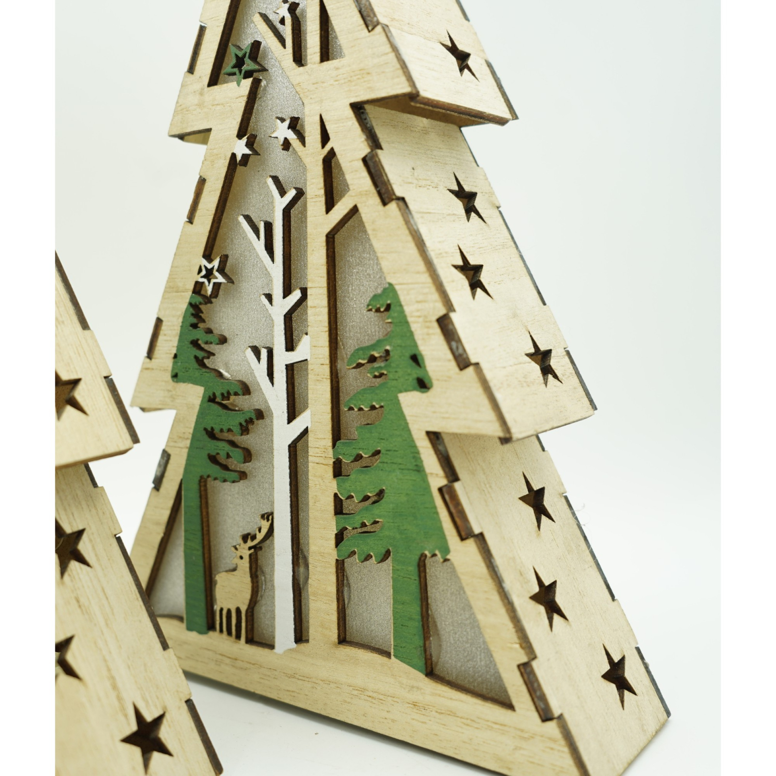Decoratiune luminoasa, model de Brad cu Peisaj de iarna, maro, lungime: 14 cm, latime: 5 cm, inaltime: 20 cm, lemn, interior/exterior