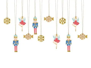 Etichete cadou din hârtie cu model de spărgător de nuci, într-o varietate de modele și culori. Setul include 12 etichete (4 modele, câte 3 din fiecare) și 2,5 m de șnur auriu. Dimensiunile etichetei: aprox. 4-6,5 x 4-12 cm.