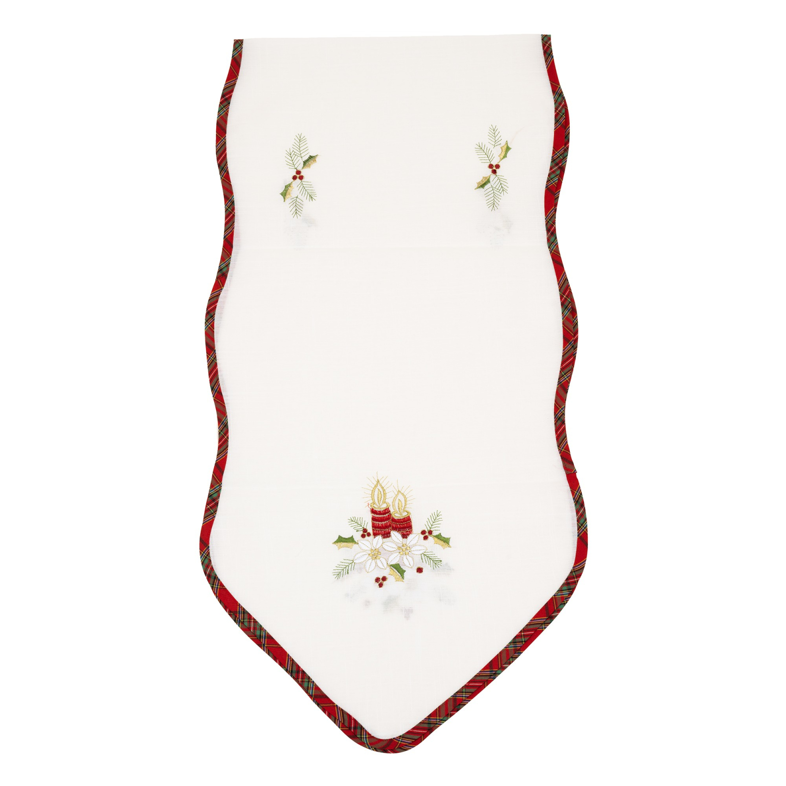 Fața de masă Flippy cu motive florale de Crăciun și lumânări adaugă o notă de eleganță și sărbătoare la orice masă festivă. Realizată din material brodat de înaltă calitate, această față de masă de 180 x 40 cm îmbină tradiția Crăciunului cu un design delicat de lumânări, oferind un cadru perfect pentru momentele speciale.