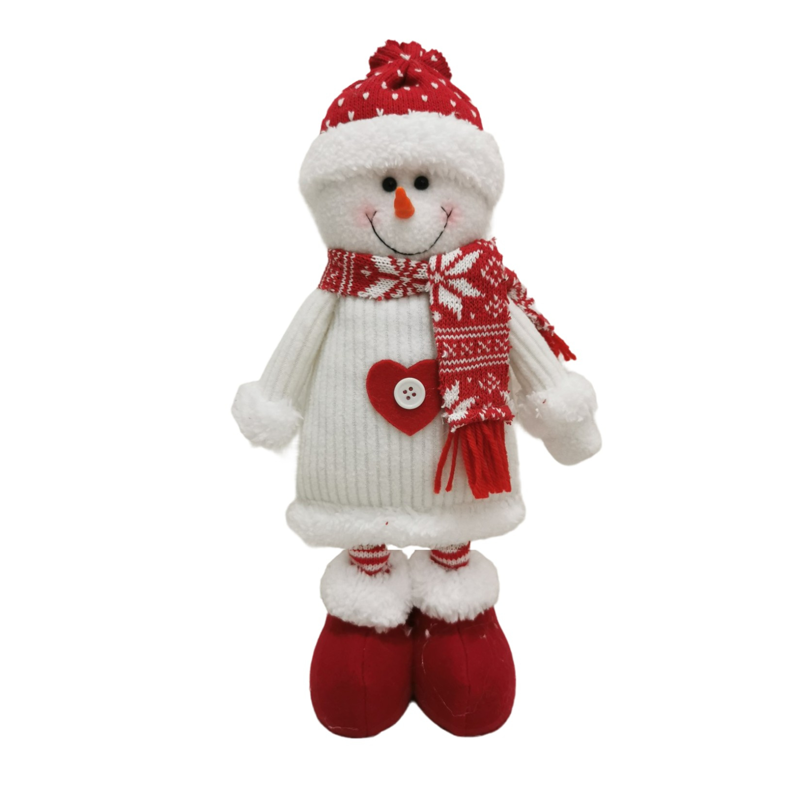 Design Atrăgător: Omul de zapada Flippy poartă o căciulă alb-roșie cu inimioare, adăugând un detaliu adorabil și festiv care va capta atenția tuturor.