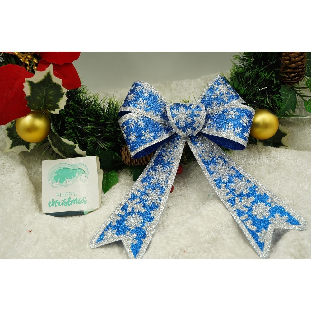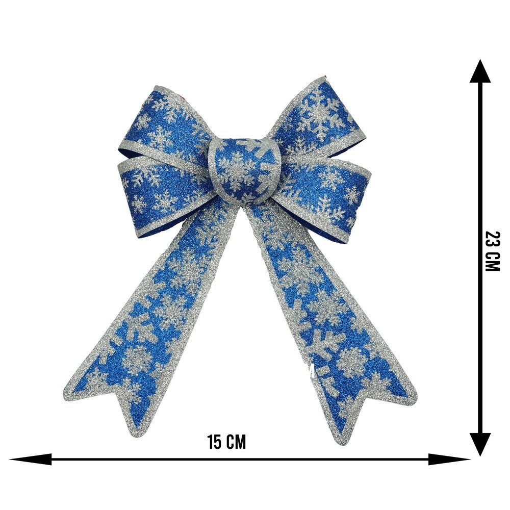 Funda pentru brad, Albastra, model de nea, cu margini argintii, 15 x 23 cm, PVC, Flippy
