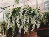 Ghirlandă de glicină, albă cu frunze verzi, înălțime aprox. 8 cm, lungime aprox. 1,7 m.