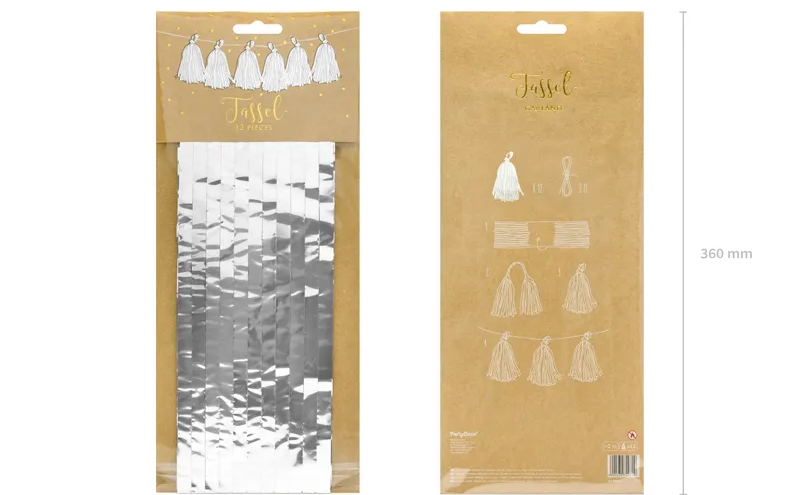 ghirlanda cu franjuri argintii pentru decor, 200 cm