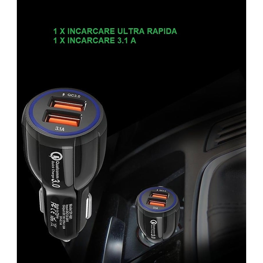 Încărcător Auto, Flippy, Pentru Brichetă, Încărcare Rapidă, Interfață USB, 12V-24V, Negru