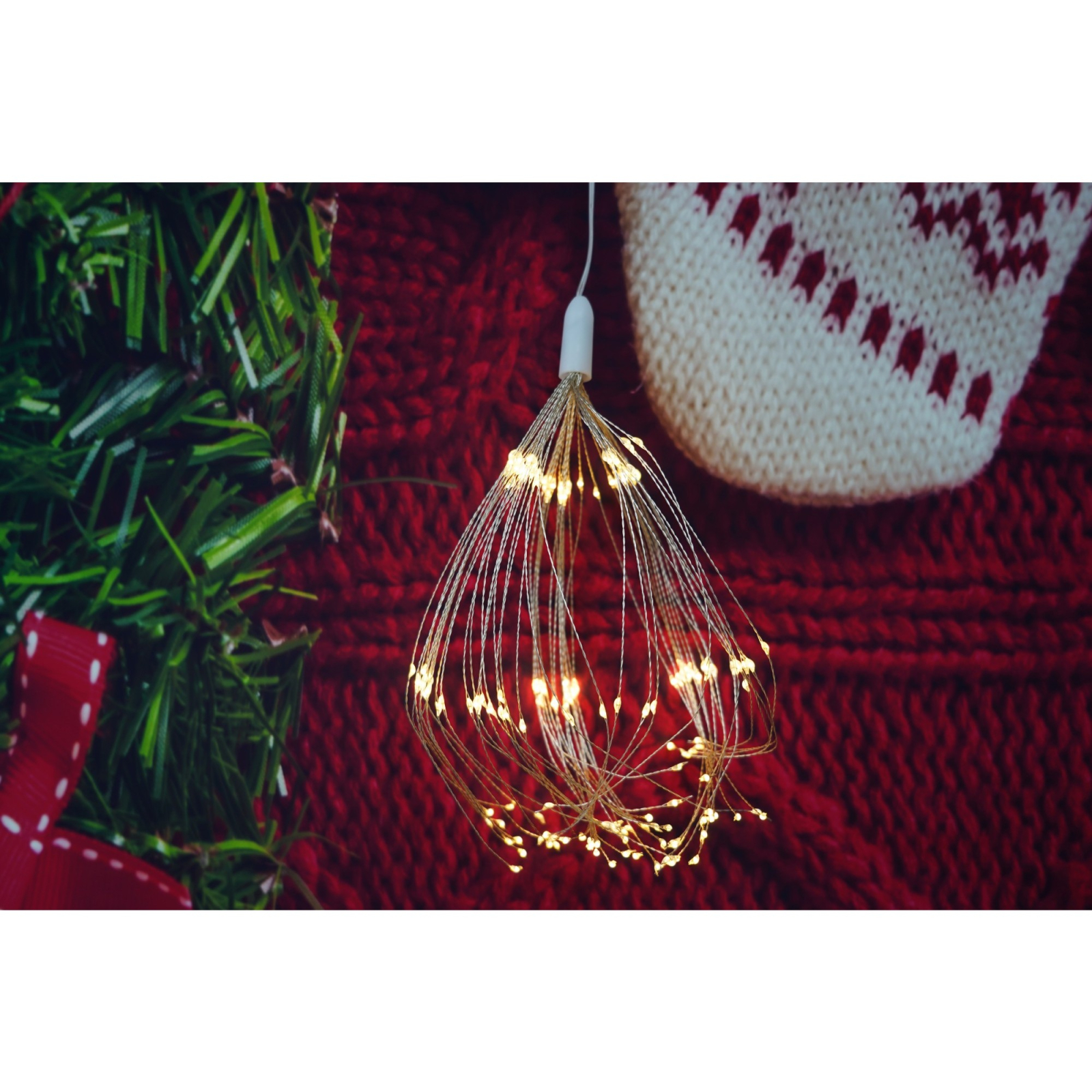 Instalatie Craciun, 180 LED-uri, alb cald, telecomanda 8 functii, cu baterii, explozie fireworks, fir cupru, interior/exterior, Flippy