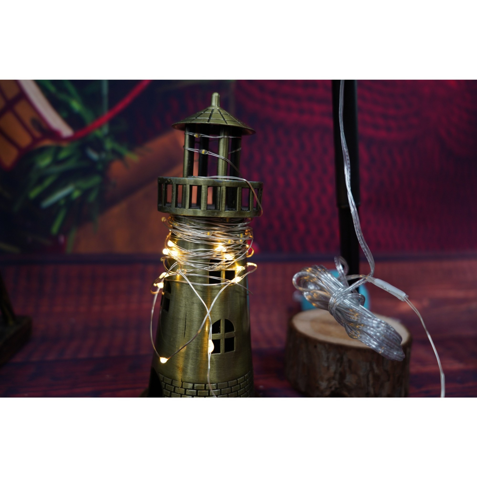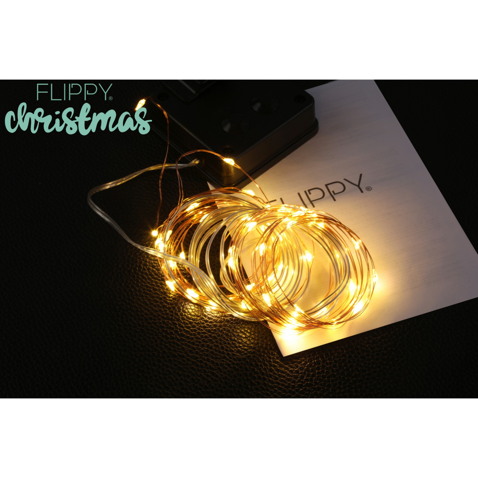 Instalatie Craciun, 5 metri, 50 de LED-uri, alb cald, cu energie solara, fir de cupru, liniar, interior/exterior, Flippy