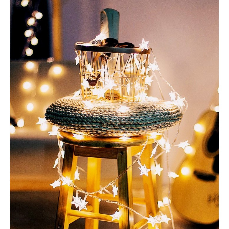 -instalatia propriu zisa cu lumini LED sub forma de stelute ce ofera o lumina calda incaperii/ bradului