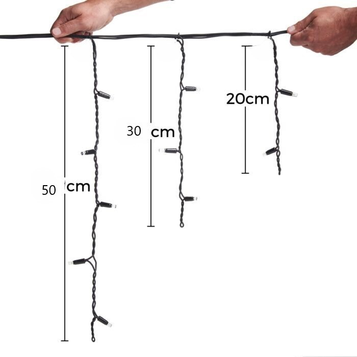 Suprafata luminoasa are un total de 60 m metri. Lungimea prelungitorului este de 1.5 m. Ofera posibilitatea de a suspenda ghirlanda astfel incat sa poata fi ascuns cablul de alimentare atunci cand este conectat la priza.