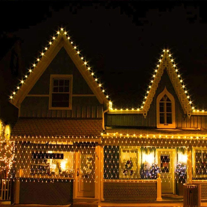 Instalatie Craciun, Tip Plasa, IP 44, 26 x 1 m, 1200 LED-uri, Alb cald, 8 jocuri de lumini, Transformator cu telecomanda, Interconectabila, Prelungitor 3 m inclus, Fir transparent, Flippy