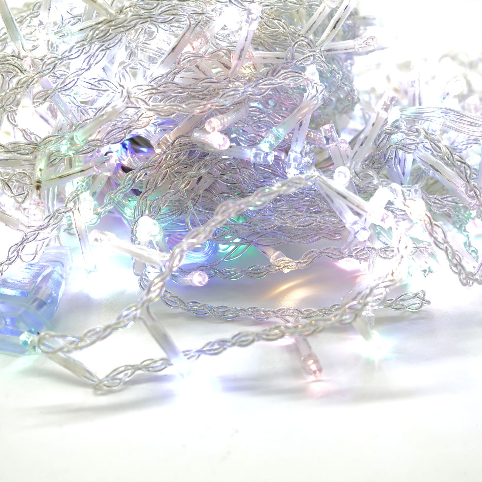 Instalatie Craciun Yoto, Tip Franjuri/Turturi, 12 m, 300 LED-uri, Prelungitor 1.5 m, 8 Jocuri de Lumini, Interconectabila, Conectare la Retea, Fir transparent, Interior/Exterior, Multicolor