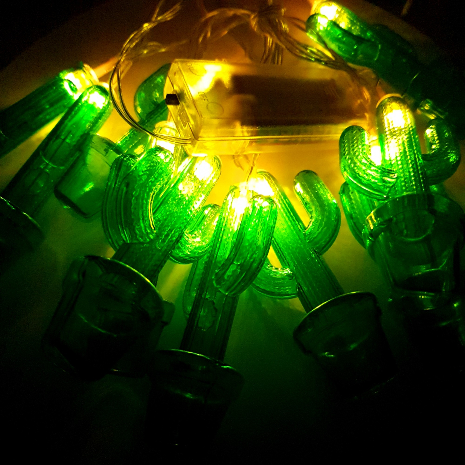 Instalatie de Craciun cu Baterii Fir Transparent Tip Sir 1.5 m 10 LED -uri Cactus Alb Cald