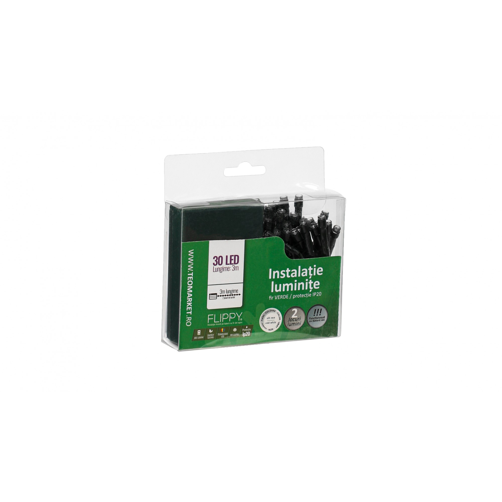 Instalatie de Craciun cu Baterii Tip Liniar, 2 jocuri de lumini, Fir Verde 3 m 30 LED -uri, Alb Rece