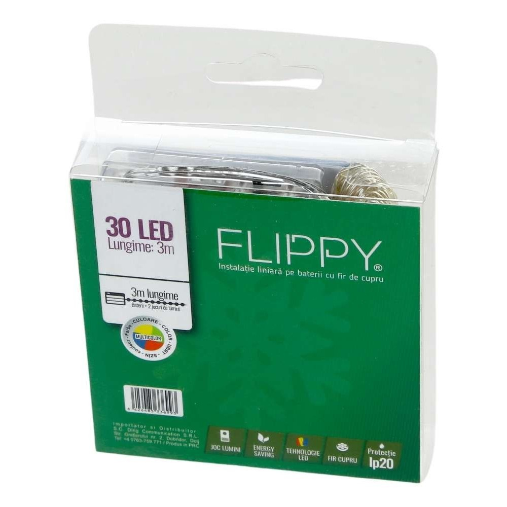 Instalatia de Craciun Liniara cu baterii este instalatia ce se integreaza perfect in decorul fiecarei case. Firul de cupru si lungimea acestuia de 3 m, maximizeaza impactul celor 30 de LED-uri cu functia FLASH impreuna cu lumina multicolora, completand atmosfera magica si entuziasta a spiritului Craciunului.